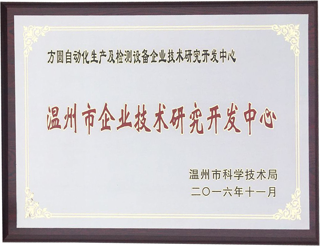 我司方圓自動化生產(chǎn)及檢測設備企業(yè)研究開發(fā)中心成立于200861月,20101123日被溫州市甌海區(qū)科技局認定為區(qū)級企業(yè)研發(fā)中心。