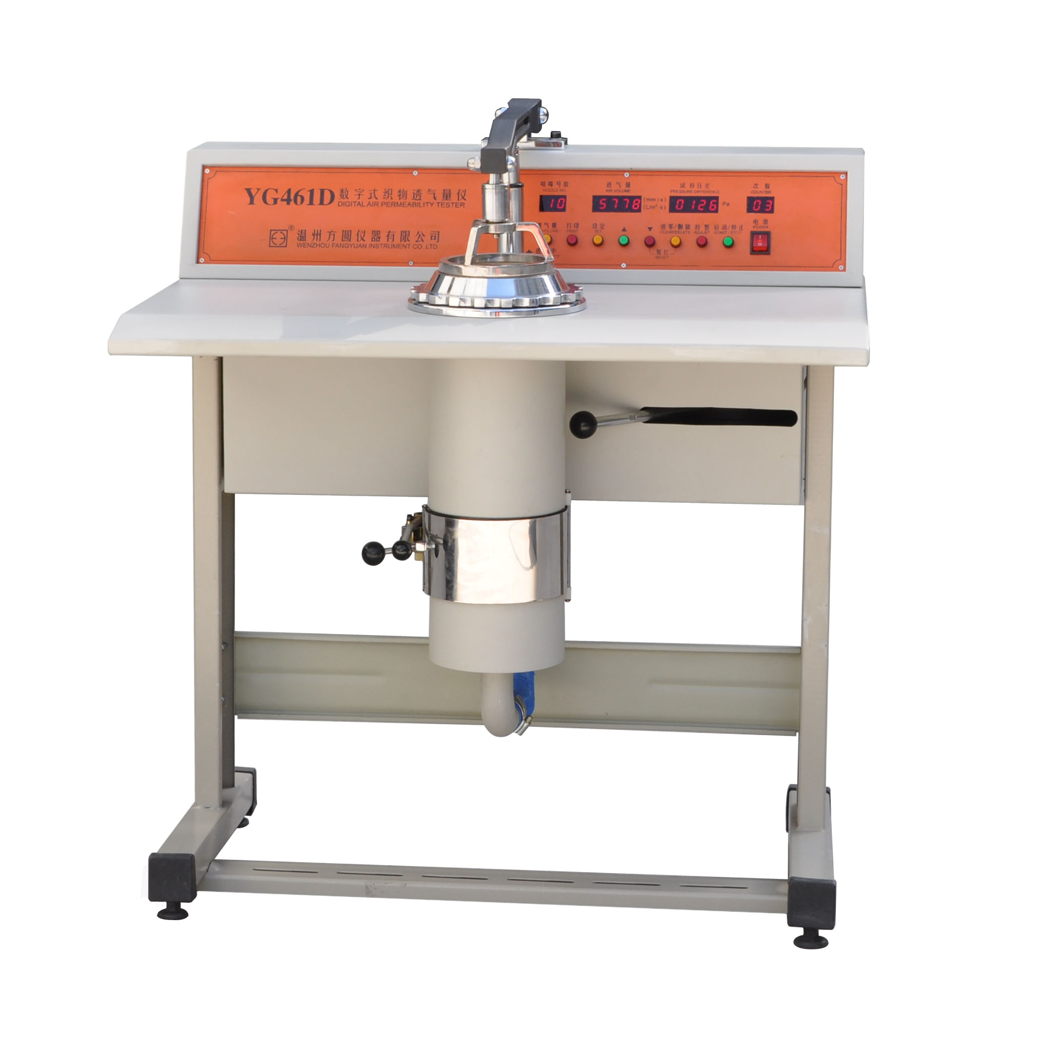 328 YG461D數(shù)字式織物透氣量儀 GB/T5453、GB12014-2009、ISO 9237、ASTM D737等標(biāo)準(zhǔn)