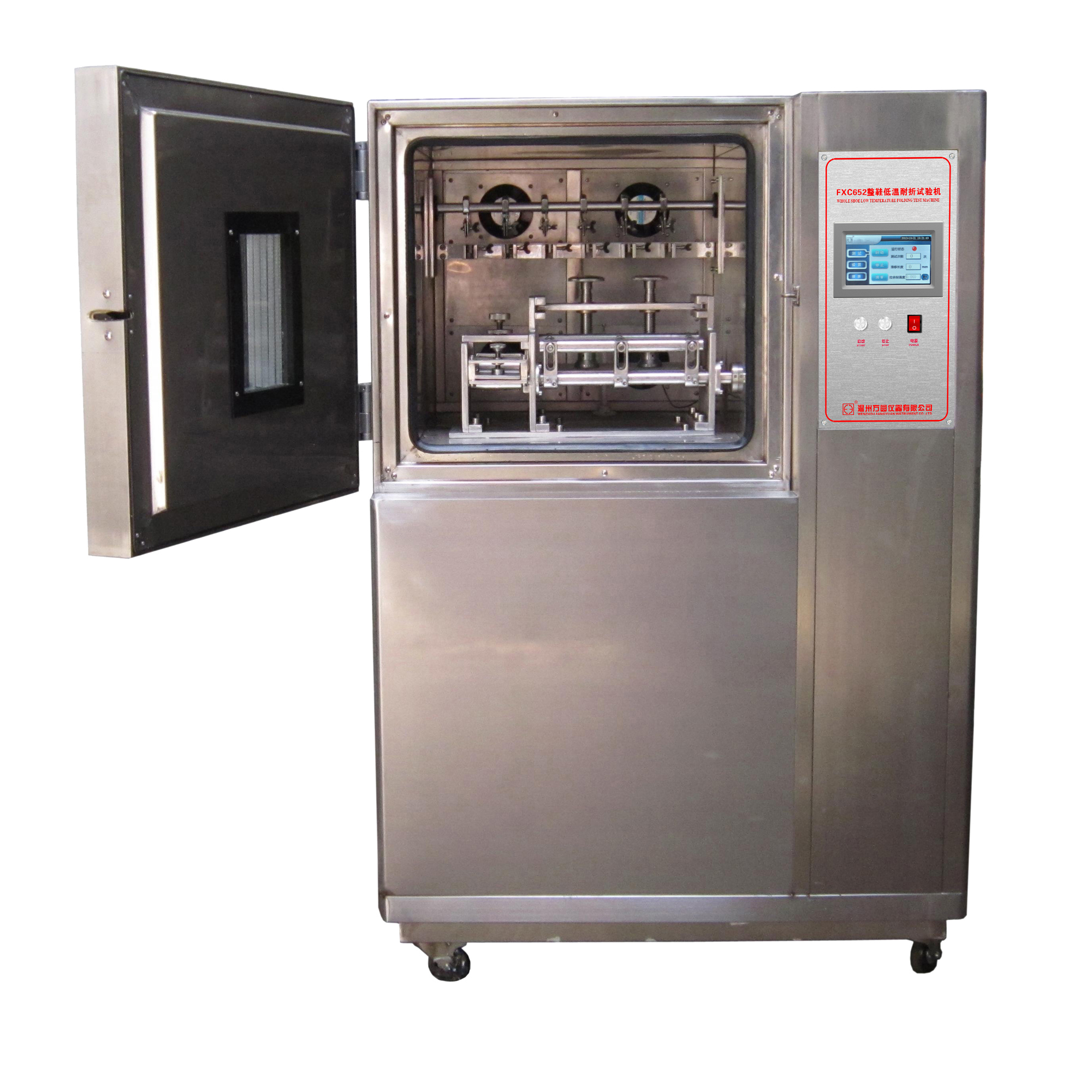 FXC650整鞋低溫耐折試驗機 HG/T 3084-2010《注塑鞋》、HG/T 2411-2006《鞋底材料90°屈撓試驗方法》、QB/T 2714-2005《皮革 物理和機械試驗 耐折牢度的測定》。